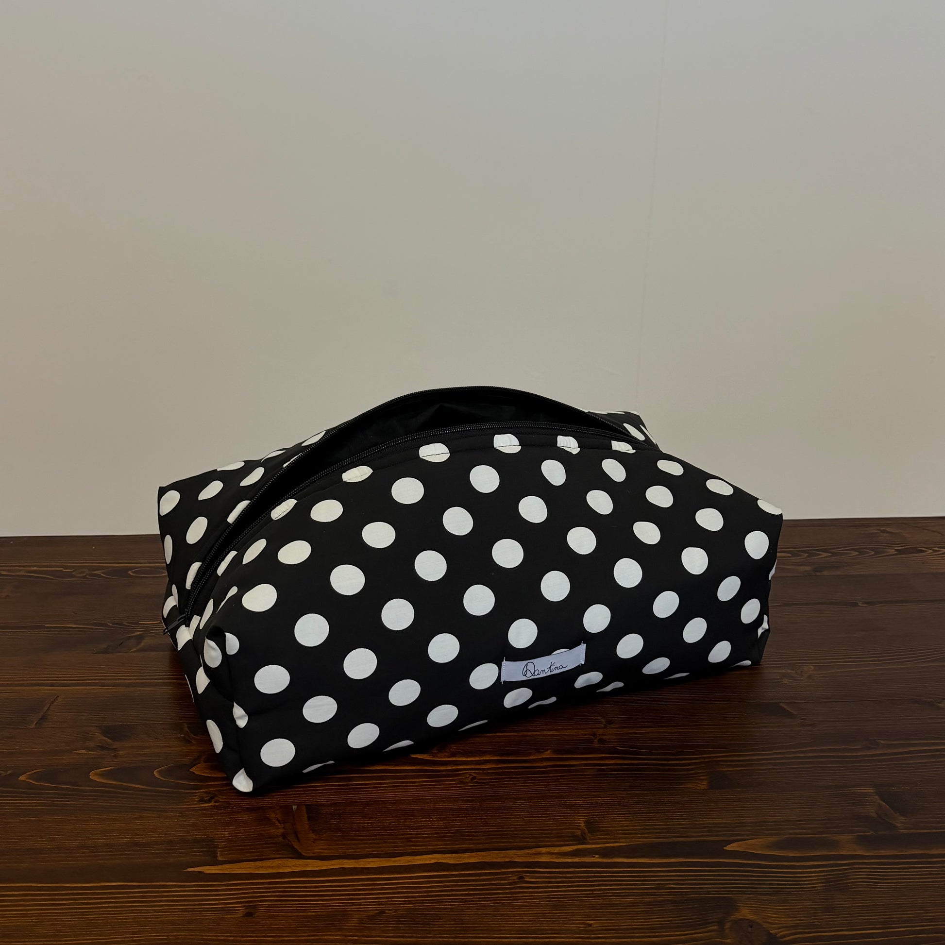 Ogni beauty-case è interamente realizzato a mano, per questo motivo possono variare: le cuciture, i dettagli e le misure.