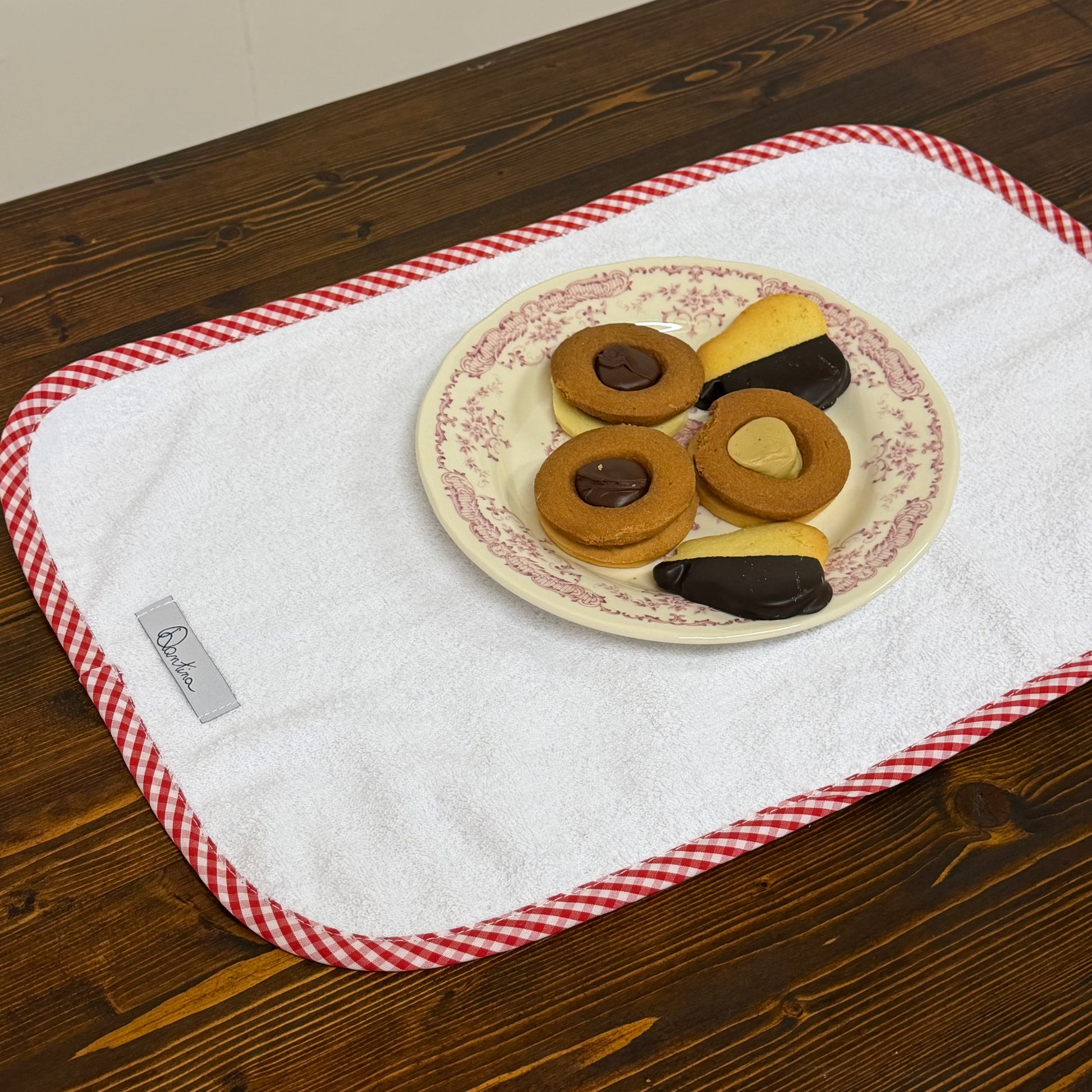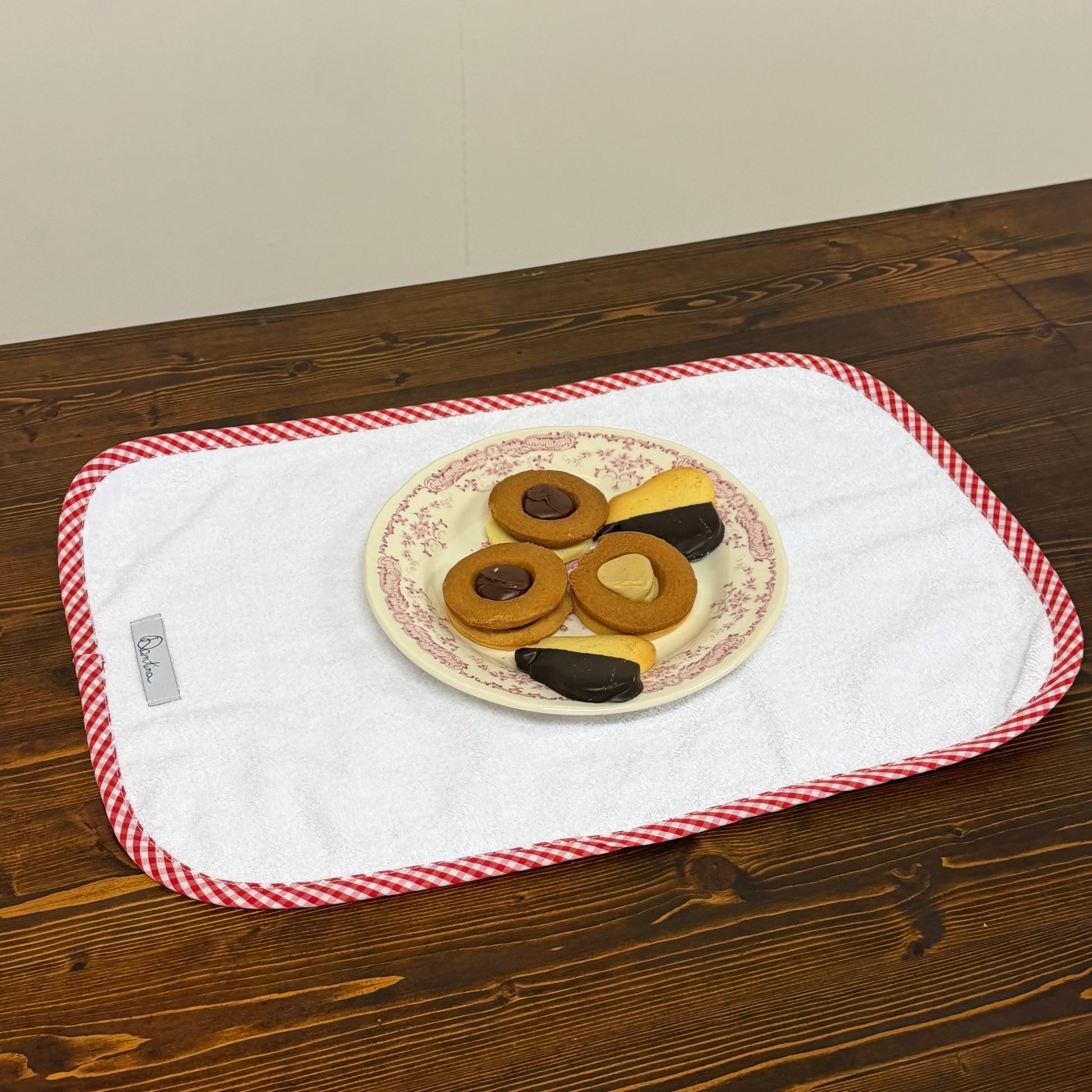 Se vuoi, puoi aggiungere un ricamo per personalizzare la tua Tovaglietta! Seleziona il font e il colore❤️