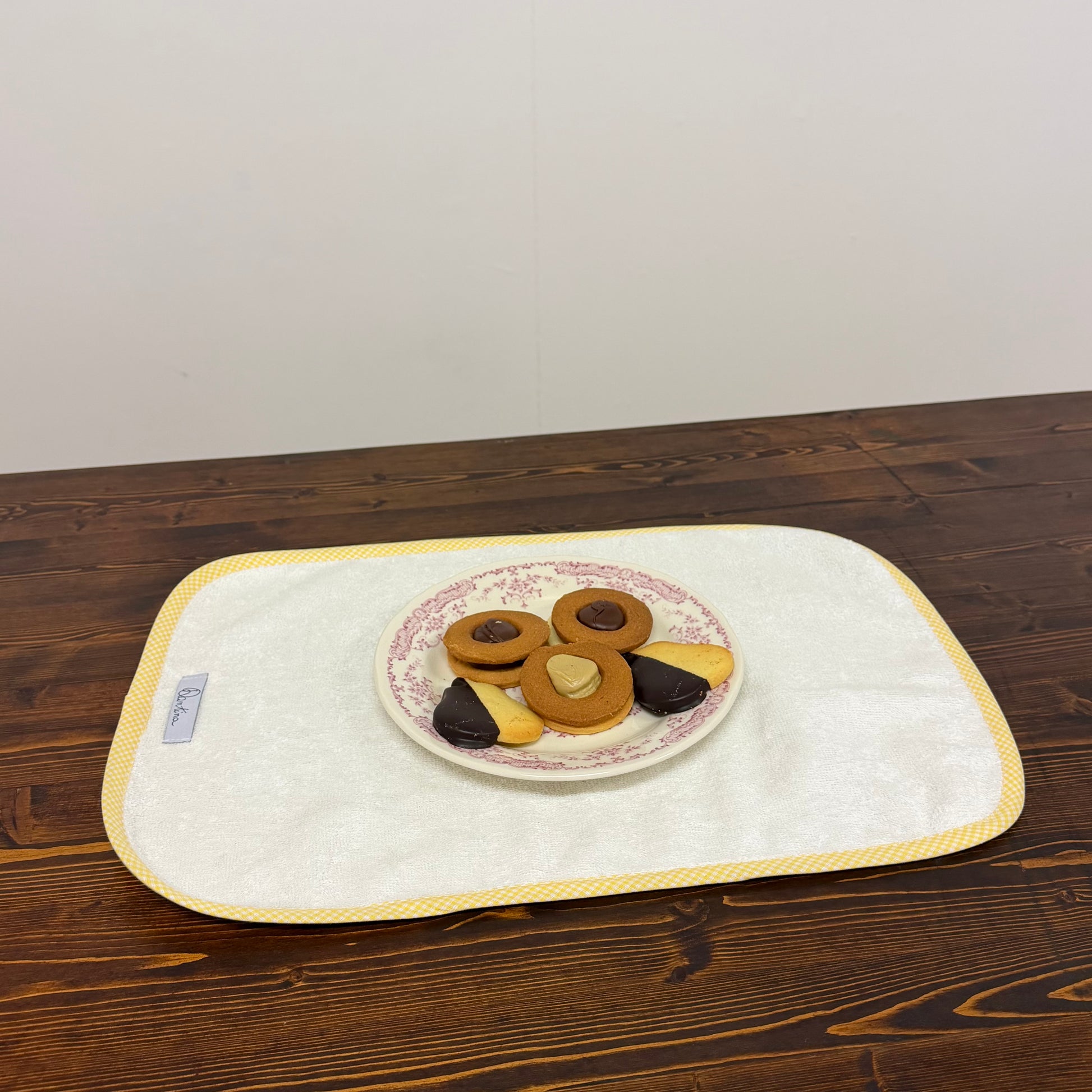 Se vuoi, puoi aggiungere un ricamo per personalizzare la tua Tovaglietta! Seleziona il font e il colore❤️
